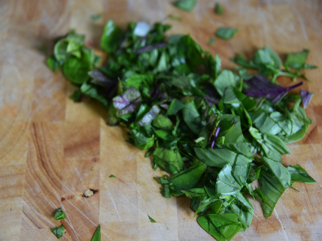 ich eine/zwei Blätter Strauchbasilikum hinzugegeben. Das Basilikum